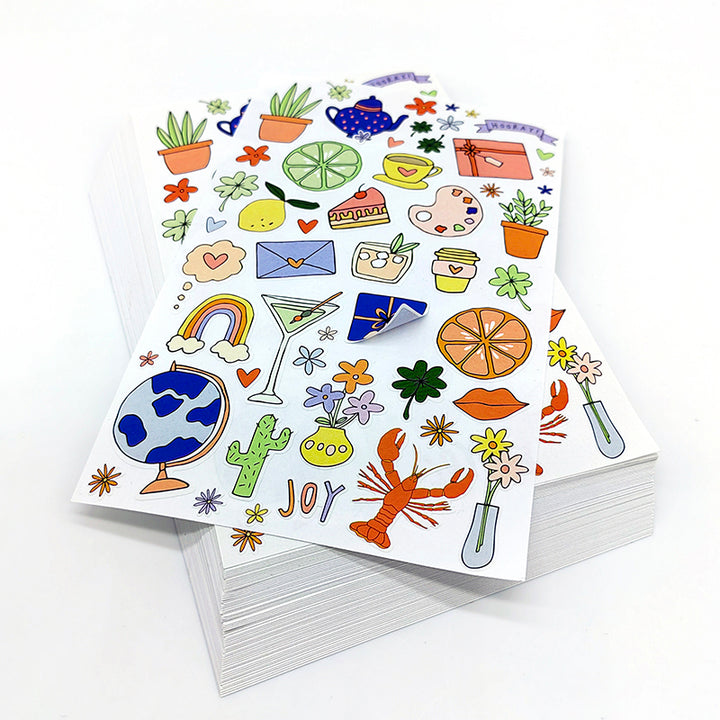 Upgrade your journals, planners, laptops, and creative projects with our high-quality Sticker Sheets. Each sheet features multiple kiss-cut stickers designed for easy peeling, smooth application, and long-lasting use. Perfect for stationery lovers, planners, and anyone who enjoys adding personality to everyday items.